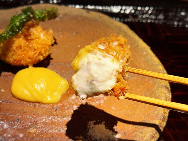 衣のサクサク感と白子のクリーミーさの食感の違いが楽しめる一皿です。