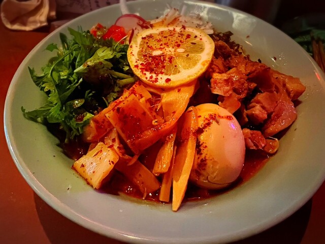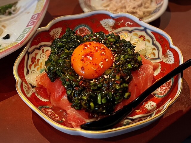 ニラの香りと卵黄の甘み、ピリッとくる辛さがたまりません。