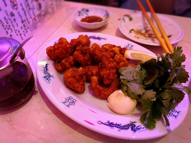 エビチリはソフトシェルシュリンプを使っているので、頭からいけて残すとこなくいただけます。