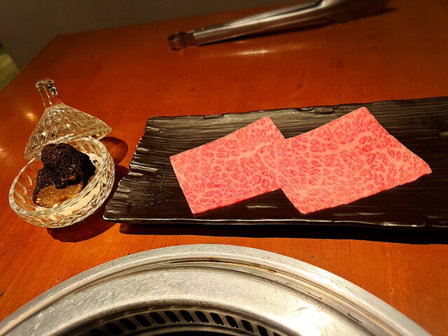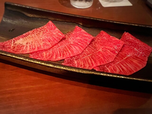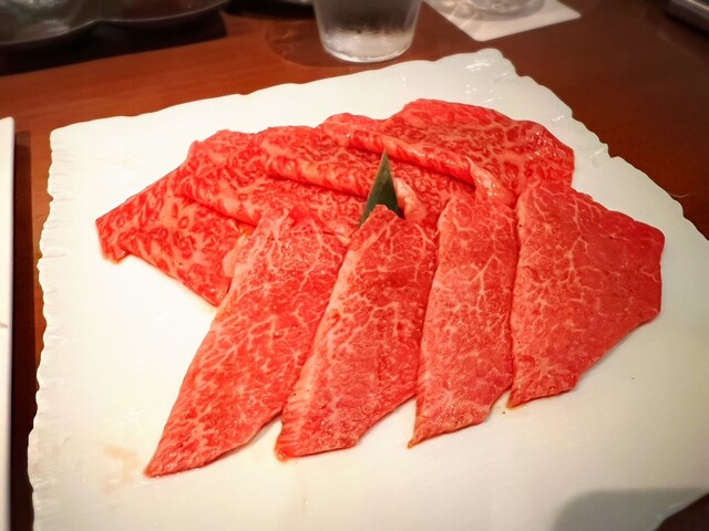 店員さんが丁寧に1枚1枚お肉をいい塩梅に焼いてくださり、コースで出たお肉は、どれも半生で戴きました。