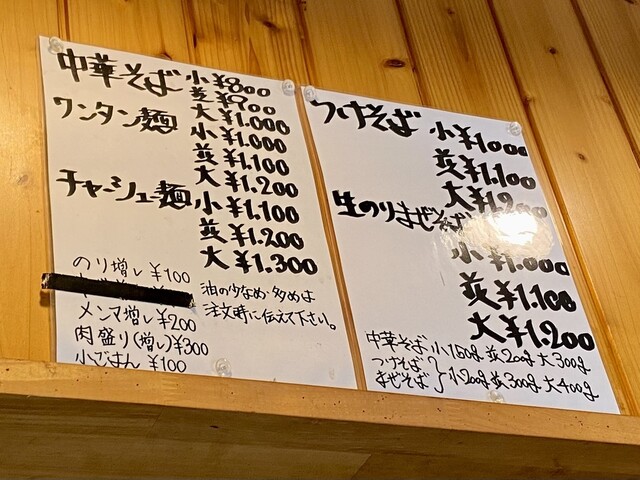 基本の「中華そば」は醤油一択です。選べるのは、大、並、小の3種類の麺量と、デフォか、ワンタン麺か、チャーシュー麺の3種類。他はトッピング。