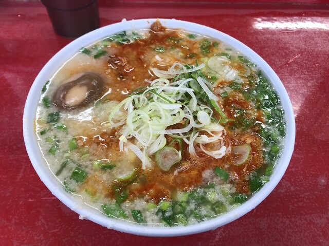お店自慢の辛口ホルモンから出る辛味と、辣油から来る辛味もあるものの、豚の旨味と背脂で辛味がどっかいっちゃった感じ(笑)