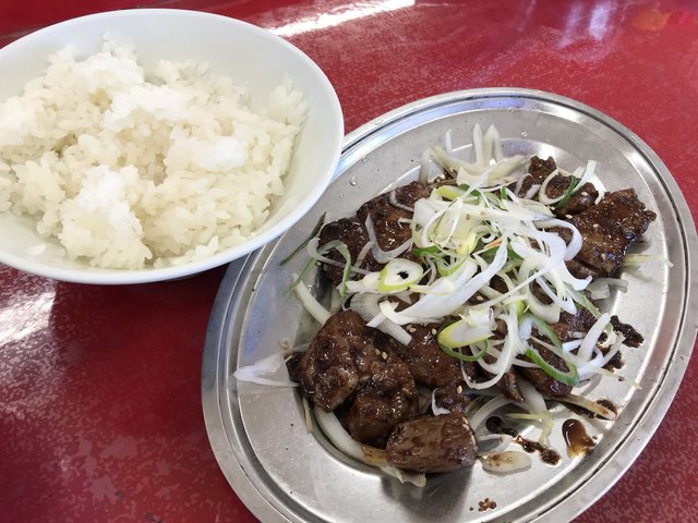 白ご飯の上に、辛口ホルモンを乗せて食べるのもオススメです。濃厚スープが染み込んだホルモンと、白ご飯は鉄板の相性です。元々、一品料理で出してる「辛口ホルモン」ですから、ライスに合うのは当たり前ですね。残ったスープに、ご飯を潜らせて食べるのも当たり前に美味しい。ユッケジャンクッパみたいですね。