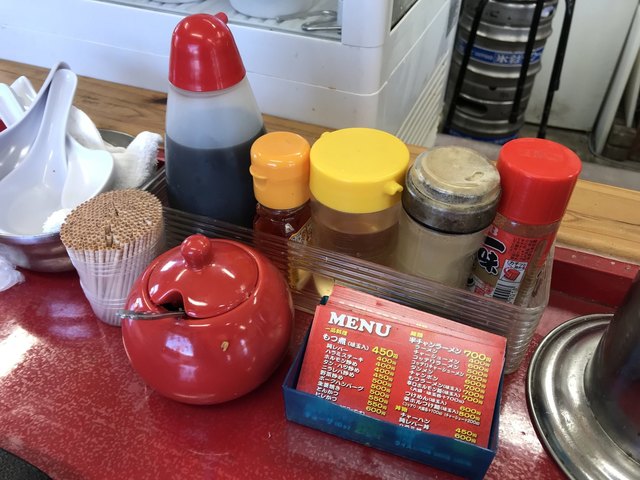 こちらはラーメン専門店じゃ無くて、モツ煮込みや、ホルモン系焼肉のお店です。肉を知り尽くした店主さんが作る、ガッツリジャンクな「辛口ホルモン麺」がお気に入りです。「ライス小」と合わせて注文します。
