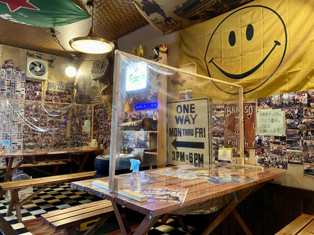 無事に車を止めて『BIG SMILE』さんに入店です。店内は内装も、装飾も、小物に至るまで、徹底してアメリカンです。良い雰囲気です。店主さんも味がありますね〜。ワンオペで営業です。
