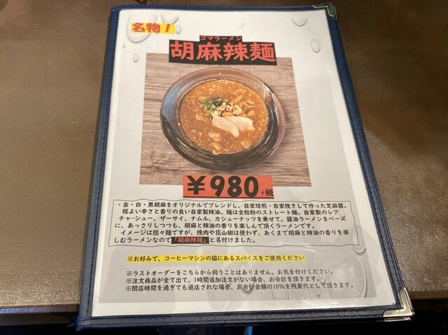 初訪問なので、一番人気だという「胡麻辣麺」と「半チャーハン」を口頭注文します。「胡麻辣麺」っていうのは担々麺の事だそうですね。