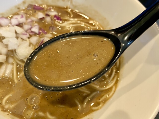 粘度が無くサラッとしたスープは、先ず煮干しの香りと塩気がガツンときます。これはかなりのニボ感。