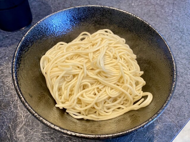 麺は低加水細ストレート。茹で加減硬めでボキボキ食感。菅野製麺の特製麺だそう。スープとの相性が良く、文句無しに美味い麺です。