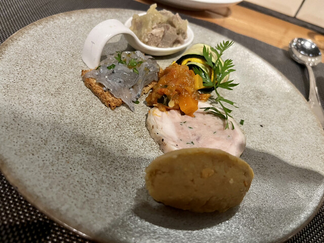 この日はお魚もお肉もスープもパスタもしっかり頂けるコースを。お腹の具合に合わせてパスタの量も加減して下さいます。
