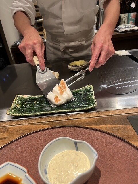 銀座松屋の裏手のビルの地下一階にあり、ご夫婦で営む鉄板焼き店です。