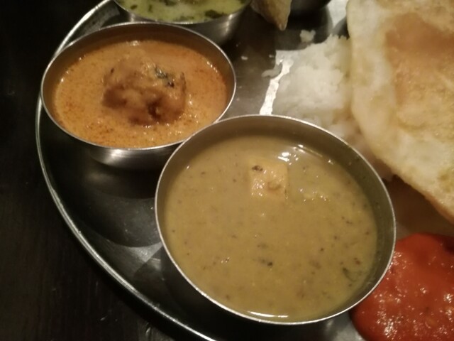 そして、ココナッツカレーも濃厚でとってもおいしかったです。カレーの付け合わせは温野菜です。目玉焼きの下には細いタイ米があり、生春巻き2個、鶏肉の入ったスープ、タピオカココナッツミルクのデザートも付いてます。そして、このお皿なんですが、平皿に見えてちょっと真ん中が深くなっており、ボリュームもそこそこあります。これで1500円は個人的には満足です。