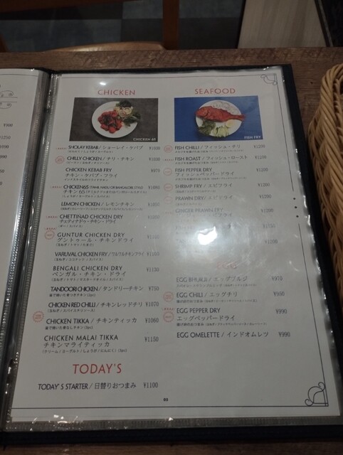 さて、ナンディニは基本的には南インド料理系のお店なので、ミールスやビリヤニが名物のようです。期待ができそう♪メニューをパラパラ見ると結構、メニューがあります。私はアラカルトもいいなぁと思ったのですが、せっかく初訪問だし、ミールスを食べてみようかなと思い注文してみました。