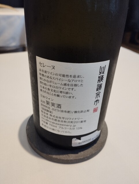 続いて、セレーヌ テール・ド・ヨイチですね。こちらは北海道の余市にある平川ワイナリーのスタンダードラインです。こちらの醸造家さんは元々ソムリエなので、ワインを単体で飲むというよりは、料理とのマリアージュを重視する作り手だと認識しています。私は、日本のワイナリーだとこちらがかなり気に入っており、自宅のワインセラーにも複数の種類を入れています。初めて飲んだのがどこだかは忘れましたが、最近は、有名なフレンチやイタリアンでもチラホラ取り扱ってくれているみたい。私が行ったことがあるところだと、中目黒の「Restaurant Re:」さんや、同じく中目黒の「unito」さんなどでも使われているようです。そのほか、北品川の三ツ星フレンチレストラン「カンテサンス」さんなどでもワインリストに入っているみたいです。ワインはオンラインでも売ってたかな。都内だと銀座SIXの中にあるIMADEYA(ネットもある)さんや広尾にフラグシップの実店舗があり、私はそこらへんで買ってます。