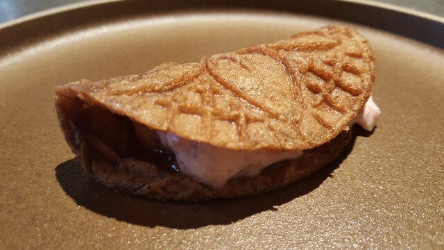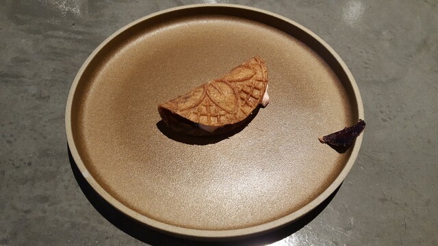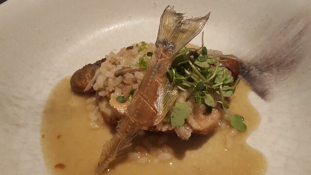 鮎にリゾットを挟むという、思いもよらない組み合わせです。甘めに煮汁がリゾットに程よく絡んで、鮎の身と一緒に頂くと得も言えぬ美味しさです。今までで一番のリゾットでした!