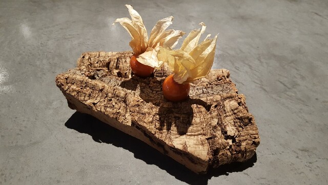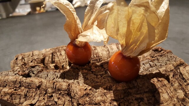 ほおずきを甘いシロップでコーティングしたデザート。美味しさもさることながら、見た目のカワイさ、見せ方は流石です。最後の最後に心まで持って行かれました!