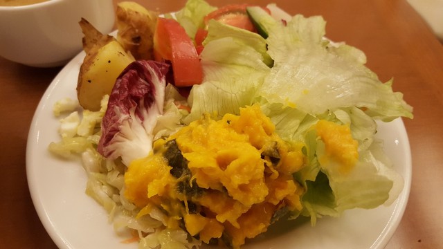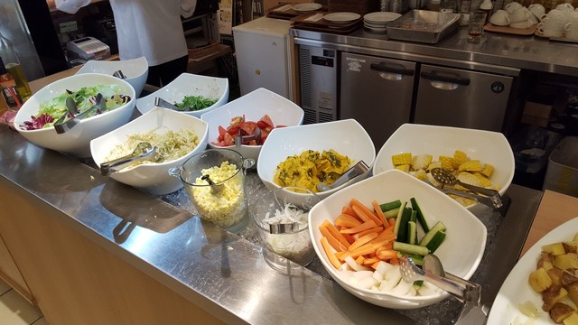 まずはメインが来るまでにサラダビュッフェで腹ごしらえです。生野菜、煮込み野菜、スティック野菜と、カロリー低く野菜の旨味を引き出す料理の数々に心も癒やされます。