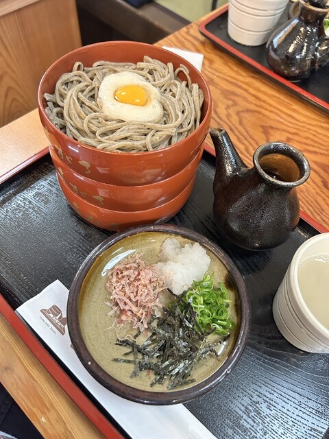満月そば3枚です。蕎麦にトロロとウズラの卵。