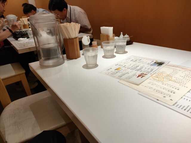 水天宮からほど近い、新大橋通り沿いにある超人気うどん店にてランチ。店内はカウンター中心で奥にはテーブル席。平日(水曜)11:30でも既にけっこう並んでて、ひっきりなしにお客様が入ってくる感じ。ただ回転が早いので、そんなに気にならずスーッと2名入れました♪久し振りに来たので今日は名物の「かしわ天うどん 1,100円」をチョイス。こちら麺の量は並・中・大と同じ料金(!)なんで、友人は大・私は中にしました。