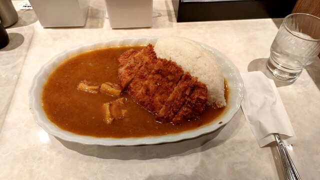 あれ〜前よりだいぶキレイに、そして少し広くなった印象。ビジネス街の休日夜なのですぐ入れました♪少し歩いたのでお腹が減ってしまい、頼んだのはカツカレー(900円)+大盛り(150円)。おおお〜懐かしのサラサラ(シャバシャバ)カレーに大盛りご飯&サクサクのカツがどぉーん!食べごたえ満点だし、ウマイウマイ。男子(オッサン)が好きな味ね〜大満足でした。
