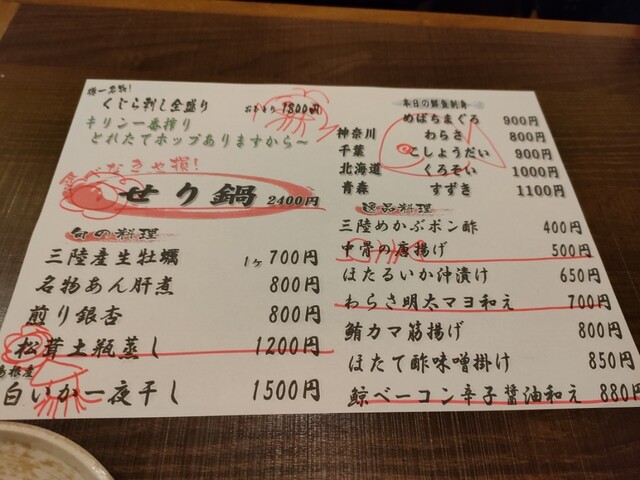 出身地が三陸とのことで、料理は海から山から三陸中心で、鯨の刺身の盛り合わせは絶品でした。酒もつまみも、何を食べてもハズレなし。初めてオーガニックせり鍋を頂いたけど、是非オススメです。〆はうどんでお願いします!笑