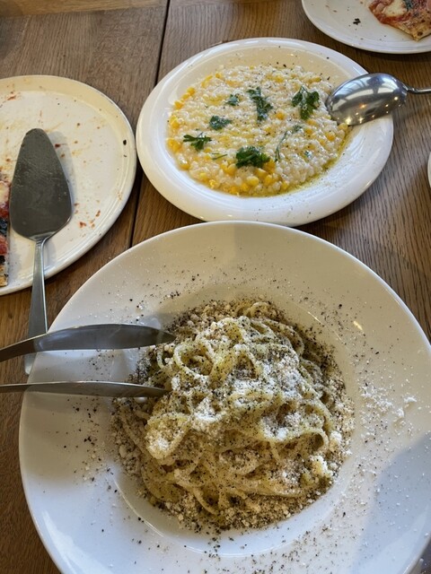 オードブルからちょっとしたサイドメニューを挟んで、ピッツァ、パスタ、メインは豚のローストと盛りだくさんで大変美味しく盛り上がりました。