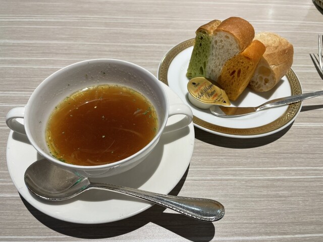 日本初のボロニアミートソースパスタのコース一択で入店。前菜〜スープ、パン、メインにデザートが付いてホテルのディナーが3,000円って凄いと思いました。コスパ最高です。