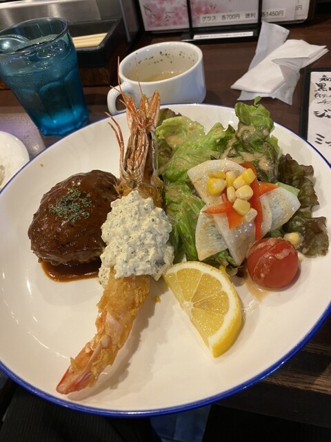 ハンバーグもエビフライも良し
