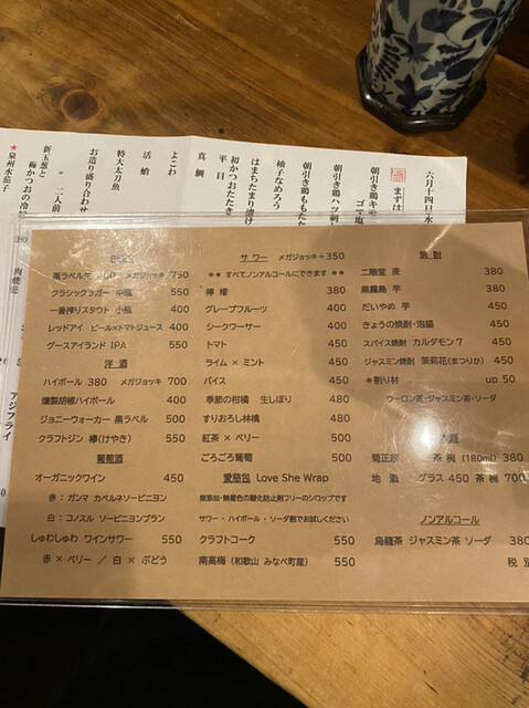 最後にあんこうから揚げ450円と日本酒で和歌山の雑賀450円を頼みました。しめて2420円。