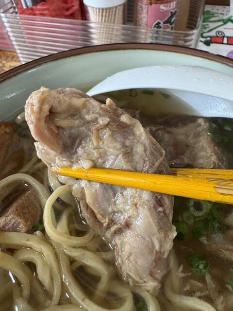 そして豚肉!このメニューには、三枚肉にソーキに軟骨ソーキの3種類が入っていて!そのいずれもがこれまたやたらと美味しい!柔らかくてもしっかりとした肉感もあって、旨味もたっぷりと!特にソーキの肉からの剥がれ方の綺麗さったら‼︎