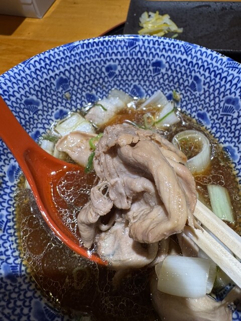 そういう訳にもいかないので、つけ汁にも投入!醤油ベースに鶏油の効いた上質なスープ!厚みというか深みにスポットを当てた様な構成となっており、コク深く味わい深い!こちらのお店は前述の様に煮干だったり、他には鶏白湯のイメージが強かったのですが、昆布水つけ麺迄もがこのクオリティで出来てしまうんだ!と。久々の極上で‼︎