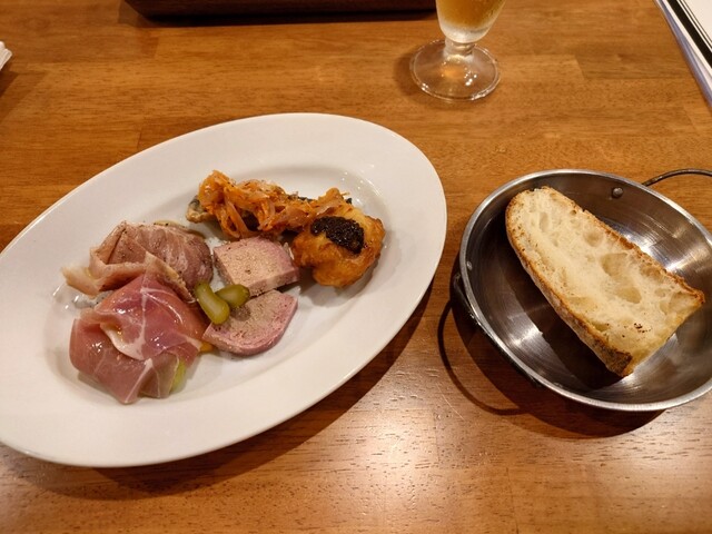 前菜盛り合わせ。パンひとつまで抜かりなく旨い。