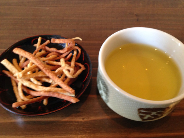 揚げた蕎麦と蕎麦茶のおもてなし