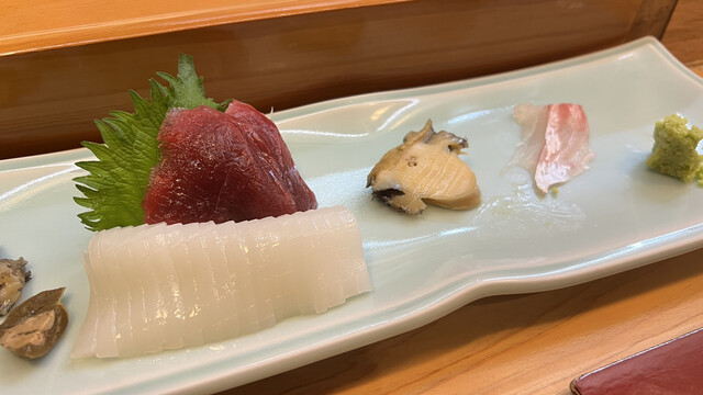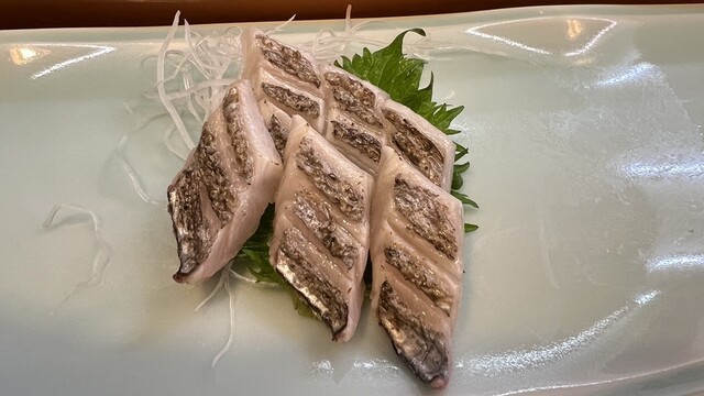 訪問するたびに食べログ記録している訳ではないのですが、それでも32回目の投稿です。月1-2回の定期訪問。こちど初めての料理はクジラの赤身から始まり白子の昆布焼で舌鼓、間に刺身をつまむという贅沢なひと時を楽しみました。