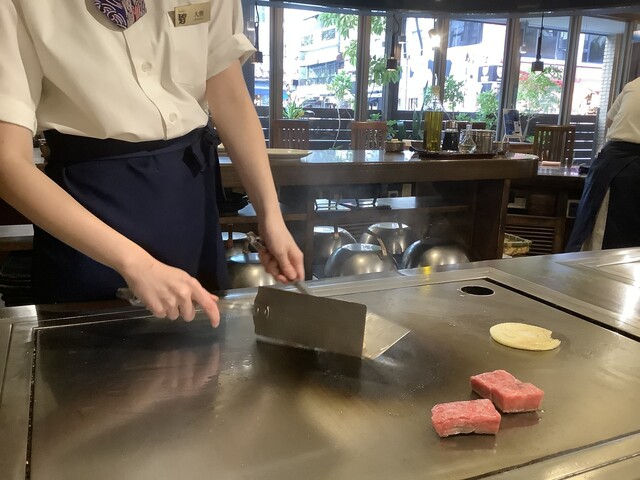 夕食タイム。沖縄牛でステーキが食べたいと思い鉄板焼きのお店へ。女性スタッフだけで運営するお店と聞き、女一人客でも入りやすいかと「碧」さんへお邪魔しました。"沖縄県産黒毛和牛 食べ比べコース "からモモとサーロインを。グラスワインも頼んで1万円ちょっとになりました。