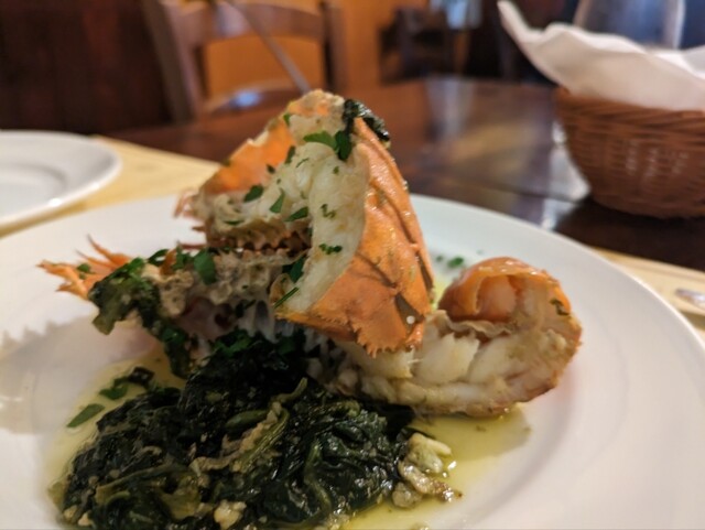 ウチワエビのグリルはもちろん美味しいが、付け合せのほうれん草のソテーが旨すぎだ。