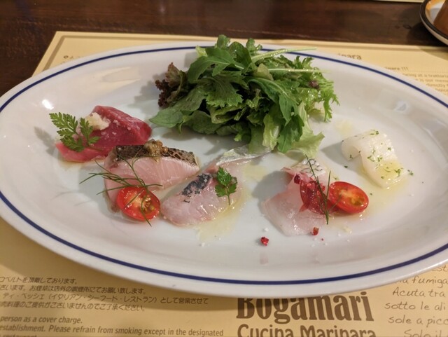 さて、前からチェックしていたこちらのシーフードイタリアン。ショーケースから選んで、料理法を決めて、組み合わせ自由のイタリアン。赤坂に似たお店【ラ・スコリエーラ】あり、行ったけどそこはメインの魚を選ぶだけ。こちらは、貝、海老など色々選べる。