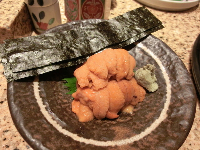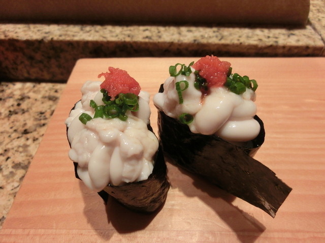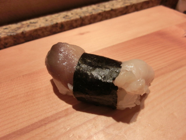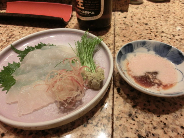 光物、貝、中トロ、平貝、カワハギがあるってことで注文すると、さすが!!!肝しょうゆでしたw最高にうまいです。