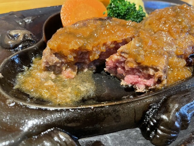 オニオンソースがまた格別で今まで食べたハンバーグで三指に入る美味さ。