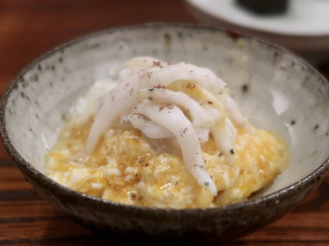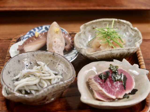 13. 御食事 イイダコ辛子和え 氷魚柚子胡椒 マグロ漬け 鯛肝和え