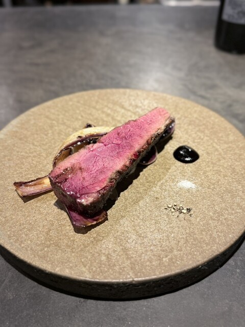 メインは今回は久しぶりにオープン当初から使われている尾崎牛を頂けた。比較的、尾崎牛でもしっかりとした食感の内腿。味わい的にも素晴らしいが、ここまで来るとやっぱりもっと切りやすいステーキナイフが欲しくなる。