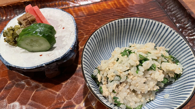 贅沢な松茸御飯だけでも美味しいのに、硬めに炊いた御飯に濃厚な出汁をたっぷり掛けてリゾット風に。枯れた感じの旨味の重なりは最高です。