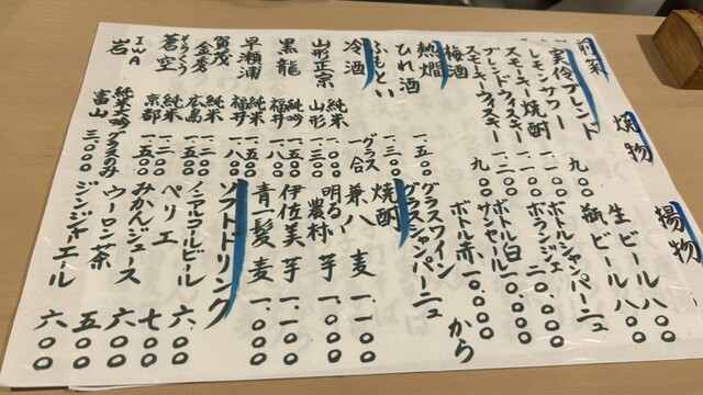 ビールを一杯頂きながら、メニューを眺めて何を頂くか頭の中で組み立てます。頂きながらも追加は出来ますが、品切れになる事もあるので、気になるものは早めに注文してしまうのが良さそうです。
