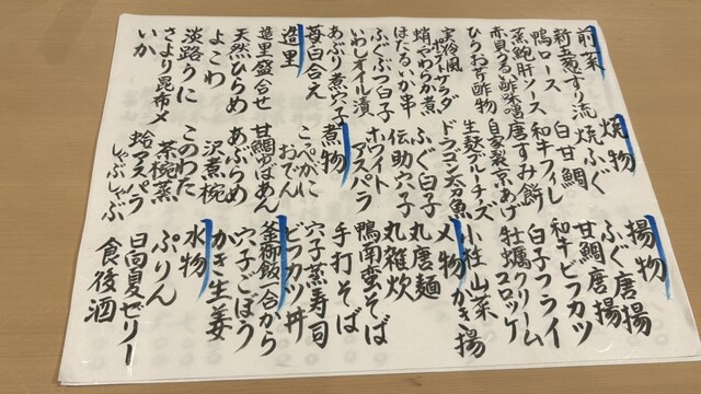 この時期は京都でも旬の素材が限られて難しい様ですが、メニューは定番も含めて充実。