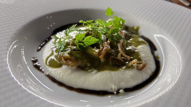 今回は旬のコースを頂きました。今月から物価高騰の煽りを受け、価格はそのままで、品数を一品減らしたそうです。ただ、ひと通り頂いてみて、それぞれの皿は以前に頂いた知っている料理だったりしますが、盛り付けが変わったり、ポーションが全体的に増えていたり、しっかり目の味付けに変わっていたり、満足感は特に変わらないと感じました。盛り付けは以前からと同様に美しいです。