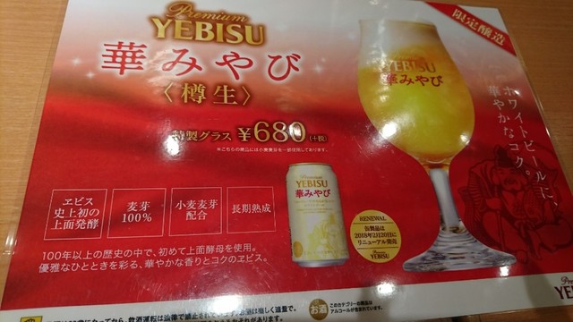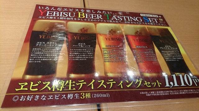 友達オススメのヱビス樽生テイスティングセットのメニュー表見てテンション上がりました٩(ˊᗜˋ*)و