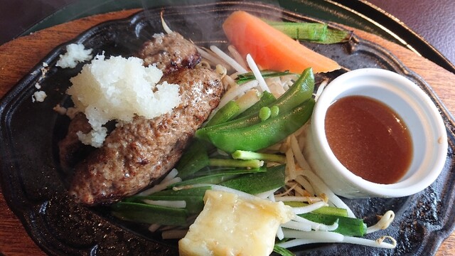 とても歯ごたえがあるハンバーグだけど、決して固いわけではなく、なんて説明したらいいんだろー‥ハンバーグっていうより肉を食べてる!って感じ(ˊᗜˋ*)