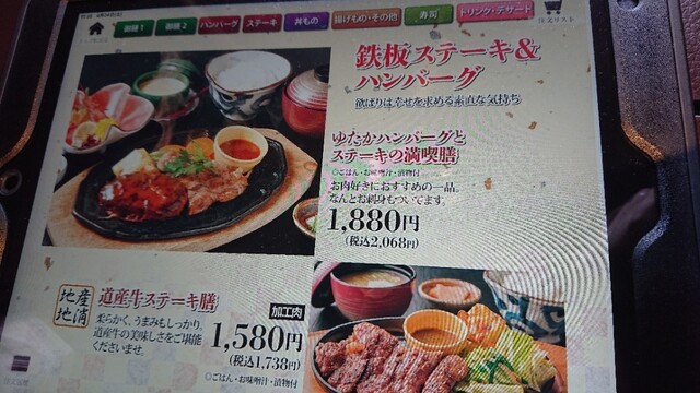 そしてメニューは以前も頼んで感動した「ゆたかハンバーグと十勝ステーキの満喫膳」(税込2068円)