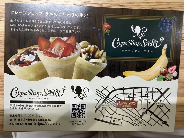 新しくオープンした「Crepe Shop SARU(クレープショップ サル)」さんに行ってきました。