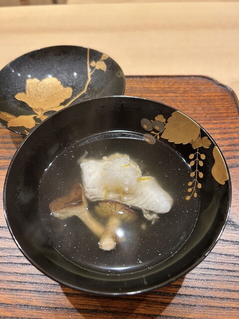 鱧を吸い椀に。一点の濁りもない汁に、ふわっとした食感の鱧。やっぱりここの椀物が好きだなー。