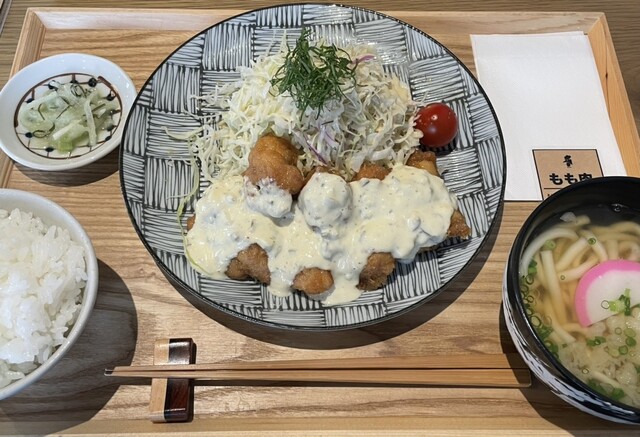 鳥南蛮を注文。ムネ肉とモモの2種から選べる。ソースも4種。味噌汁かうどんかも選べる。